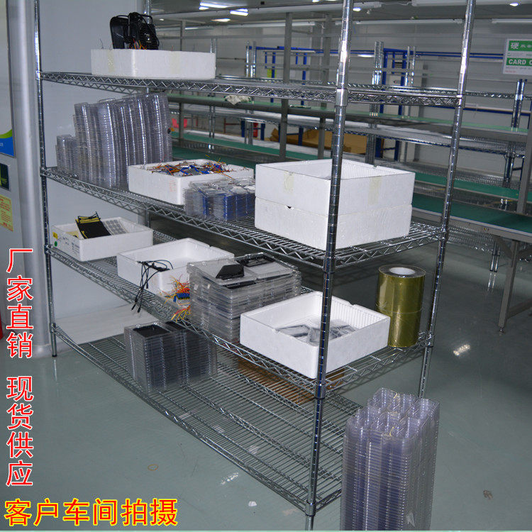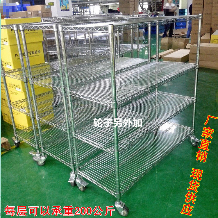 Chrome-plated wire mesh shelf stainless steel anti-static material rack with wheels mobile home storage rack metal carbon steel frame