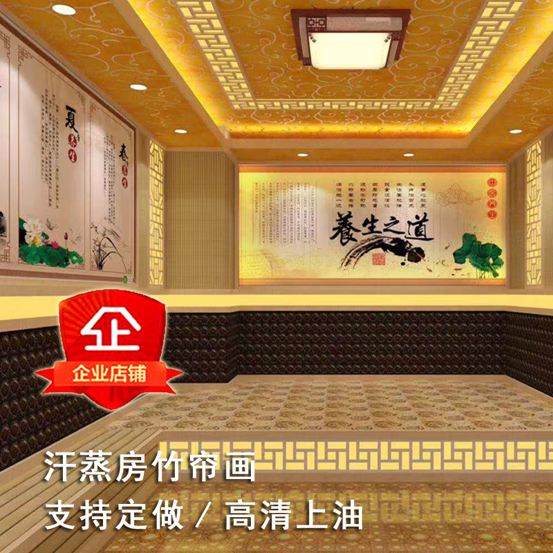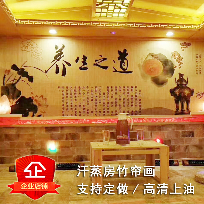 Sweat Steam Room Bamboo Curtain Painting Salt Steam Room Printed Spray Painting Curtain Bath Beauty Salon Wall Decoration Spray Painted Bamboo Mat