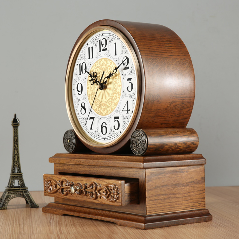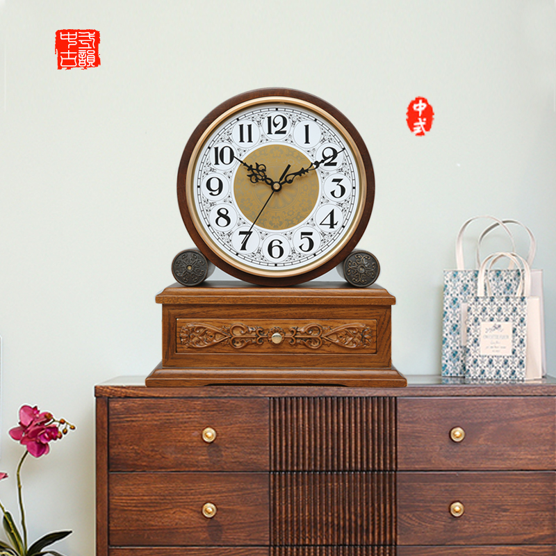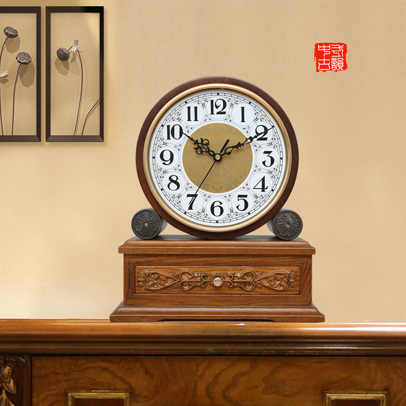 Art Son Size Chinese Solid Wood Living Room Seat Bell Creative Eu Style Retro Clock Pendulum muted desktop sitting clock