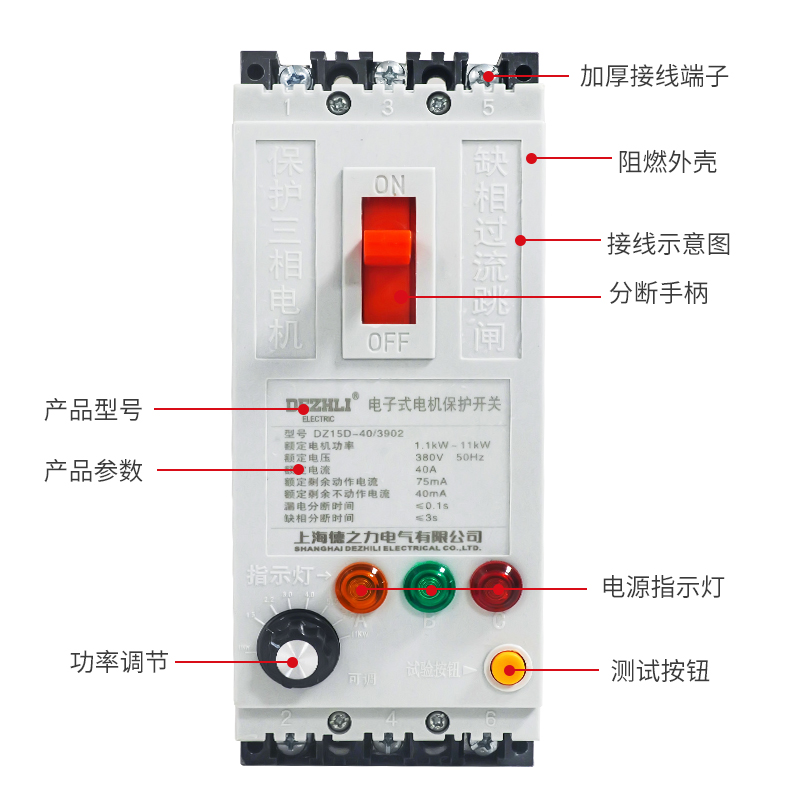 Three - phase - deficit protection switch of high power 380V motor break - phase leakage short circuit