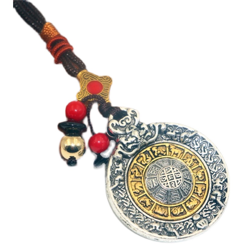 Tibet Eight Treasure Silver Pendant Nine Palace Gossip Signs Duozodiac Zodiac Hanging Tag Car Key Pendant Accessories for Men and Women