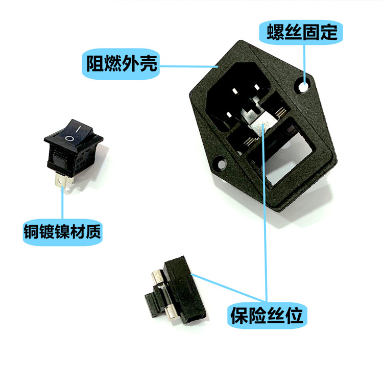 AC-01A power socket with lamp with fuse power socket three-in-one with switch pinword socket