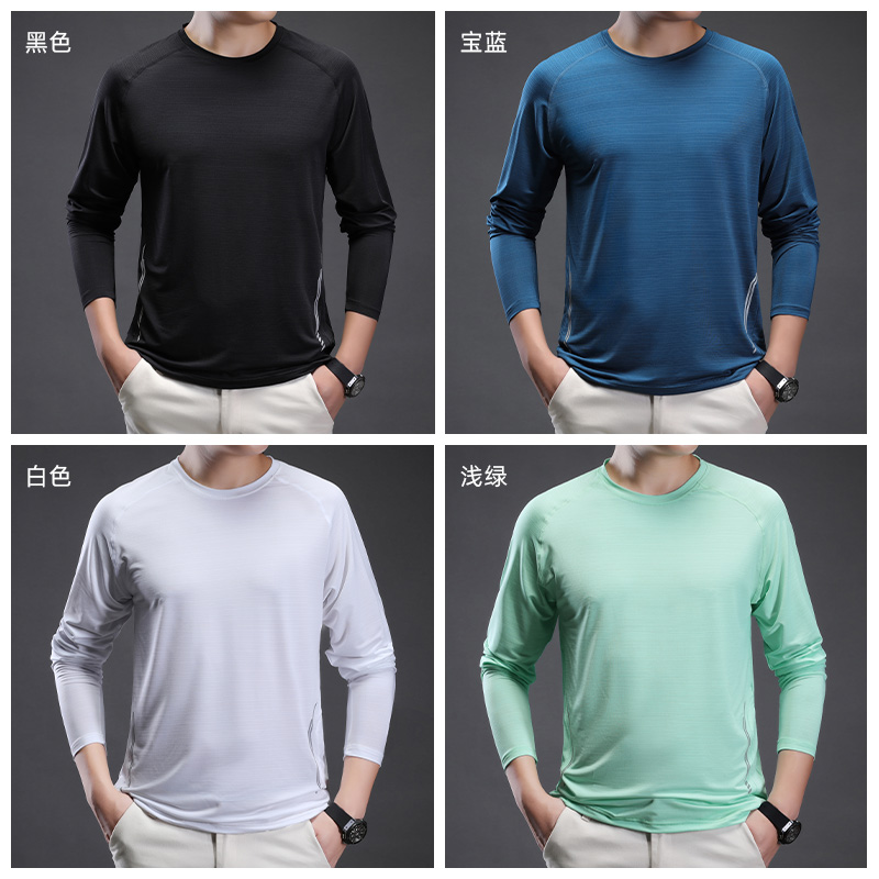Long sleeve sports T-shirt male summer 2021 new ice sensation speed dry thin running fitness clothes men's ice silk