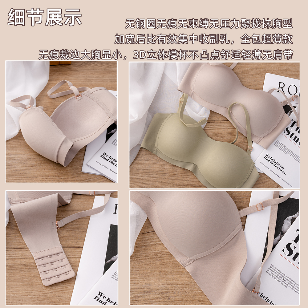 (200-80) Removable shoulder strap glossy finish No-mark-breasted underwear Female summer without steel ring to woo the bra thinner