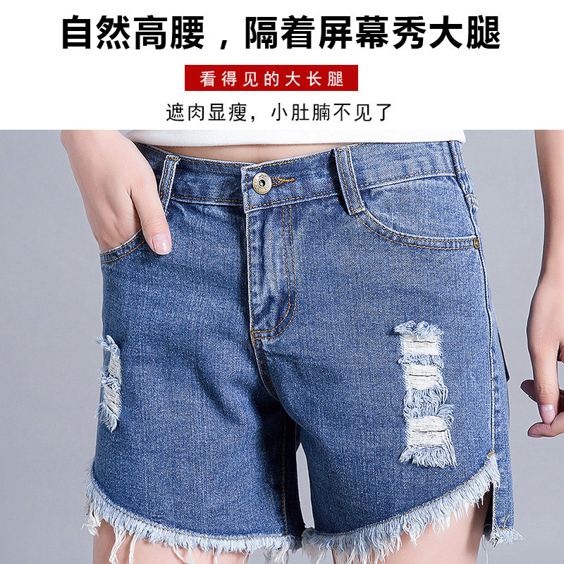 High waist jeans shorts girl autumn thin 2022 new loose broad legs slim hole ultra short hot pants