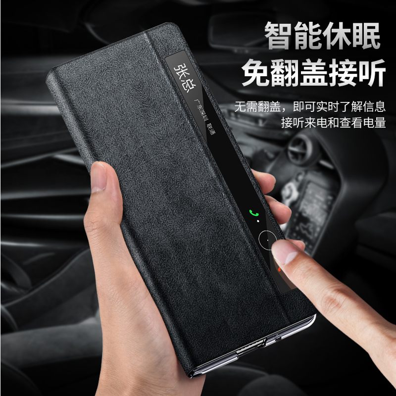 For Huawei MateX2 Phone Case Leather Flap Mete X2 Folding Screen Smart Window Cover Matax2 Full Cover Floor Plush Luxury Custom Limited Edition 5G