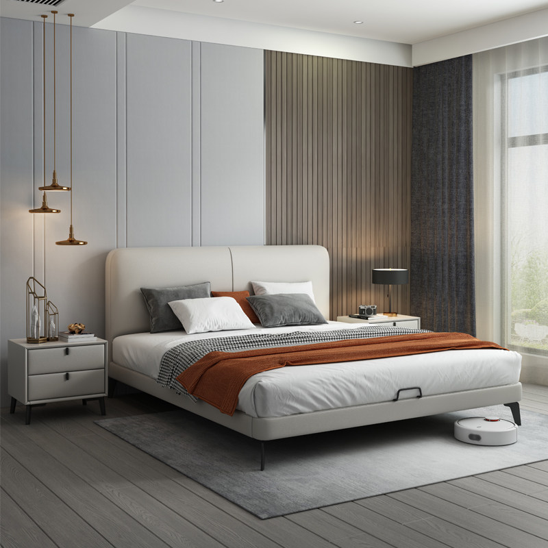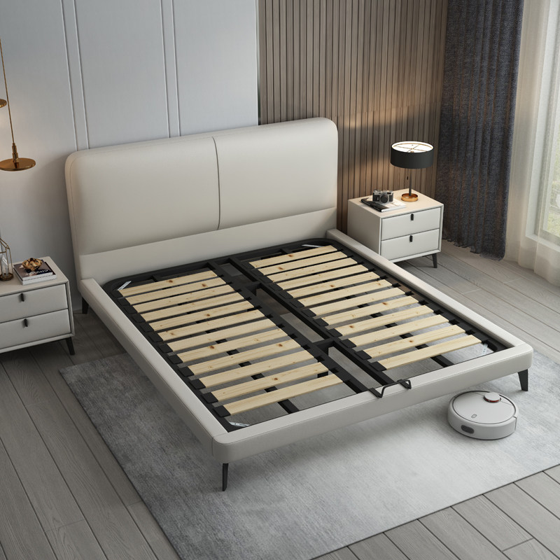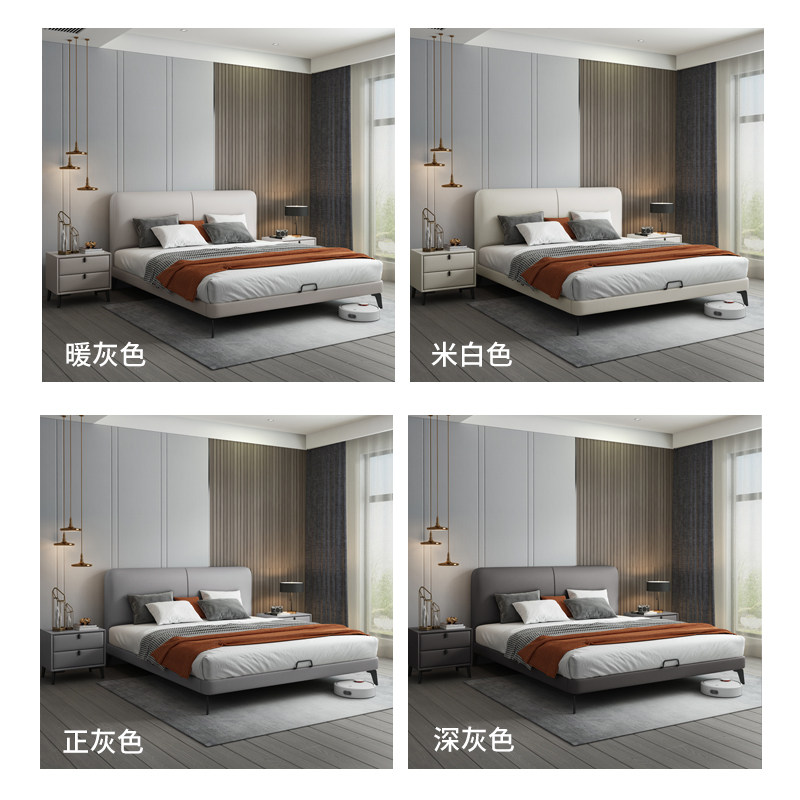 Leather bed light luxury modern leather bed double bed Nordic simple master bedroom big bed Italian minimalist soft bed small apartment bed