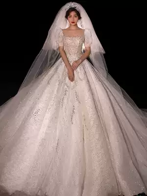 Star main wedding dress 2021 New temperament big tailing French bubble sleeve winter bride small senior sense