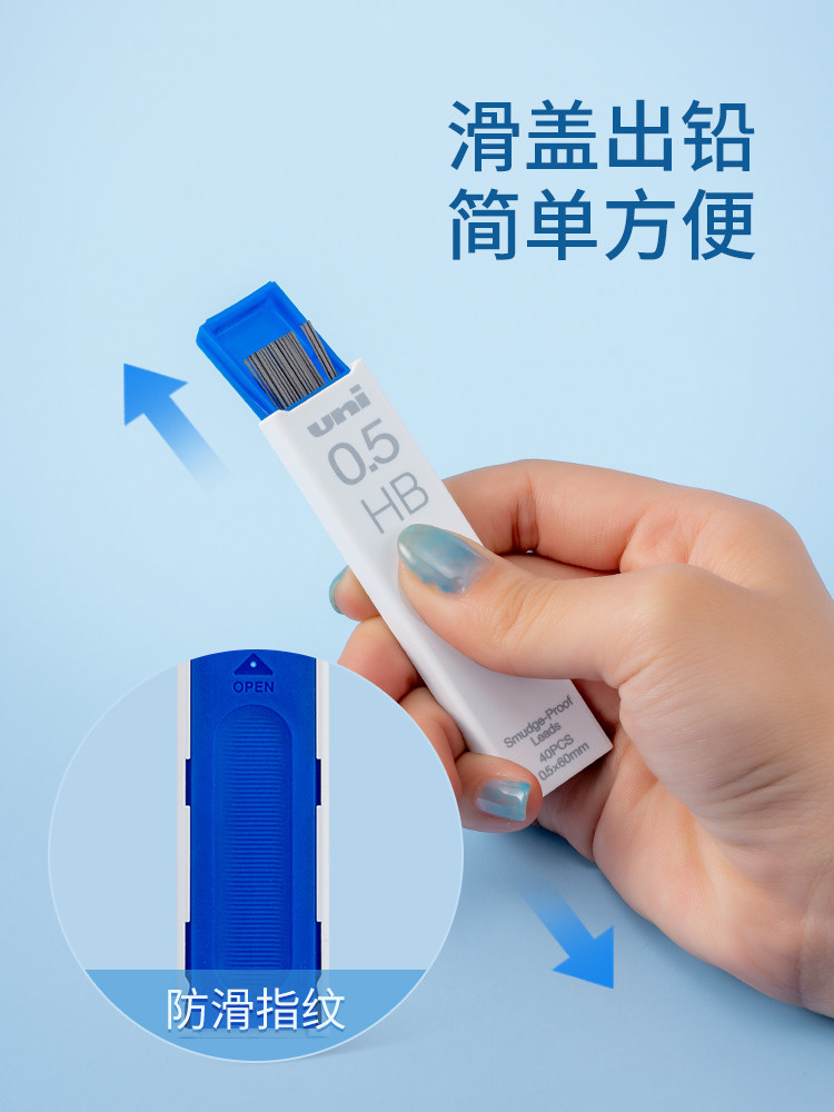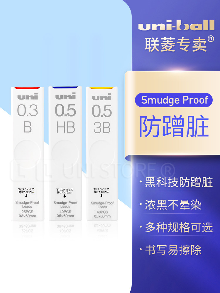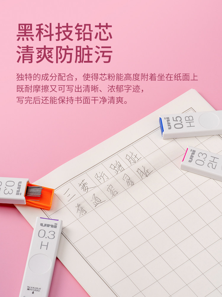 uni Mitsubishi automatic pencil substitute core 0.3 0.4 0.5 0.70.9mm elementary school student 2B HB B active nano graphite pencil substitute core UL-S anti-rubbing dirty pencil lead core Mitsubishi official store