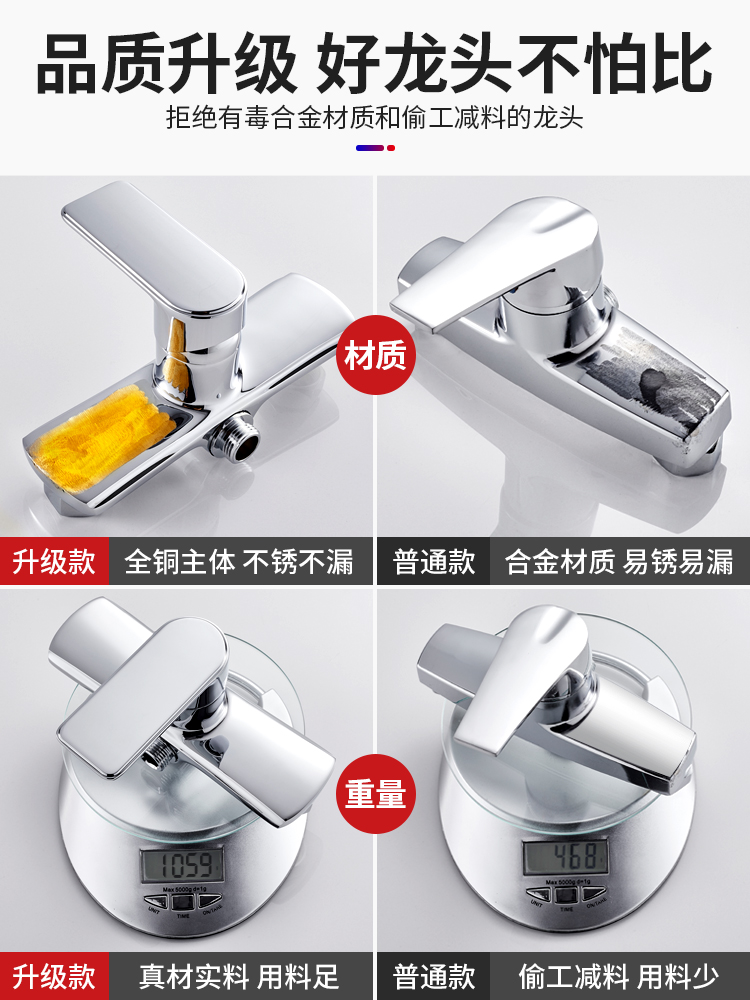 All copper mixing valve hot and cold water faucet bathroom bath shower triple switch concealed mixing valve shower set