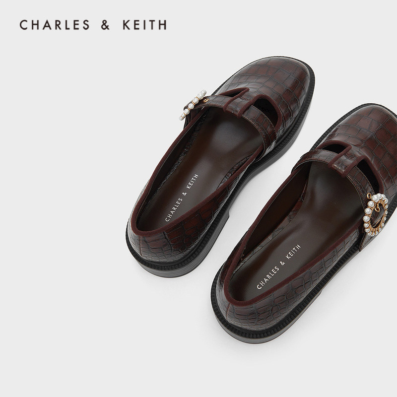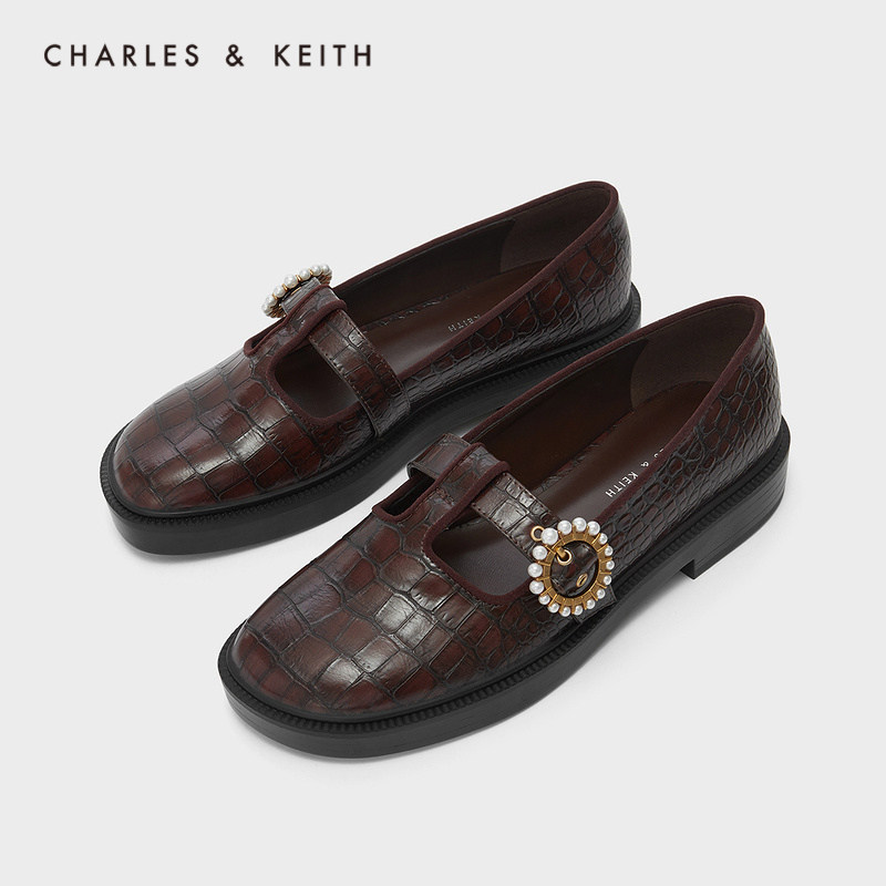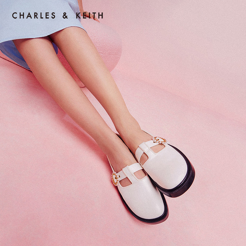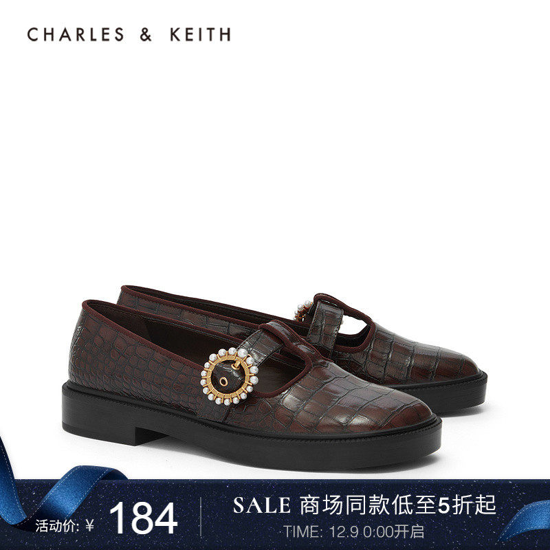 CHARLES & KEITH2021 Autumn New CK1-70900299 ladies pearl buckle belt trim low heel single shoe