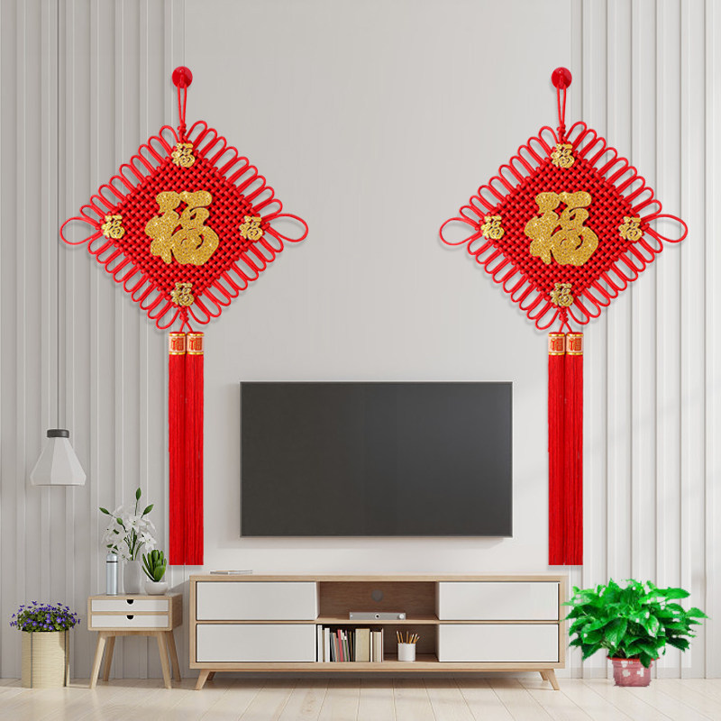 Fu character Chinese knot ornaments living room large high-end auspicious festival entrance door porch TV background wall decoration ornaments