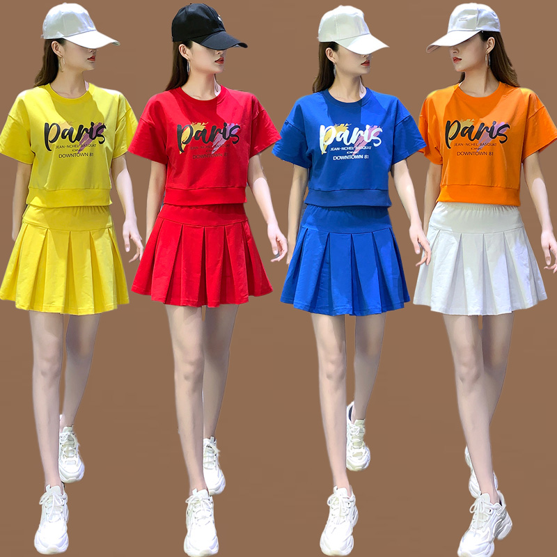 Blue short-sleeved black pants blue-edged yellow short-sleeved black pants yellow-edged red short-sleeved black pants red-edged black short-sleeved black pants white-edged orange short-sleeved black skirt orange short-sleeved white skirt orange short-sleeved orange skirt red