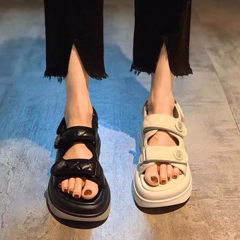 202241 Leather Velcro Sandals Women's Small Fragrance High-quality Small Casual Slippers Summer Rome Large Size