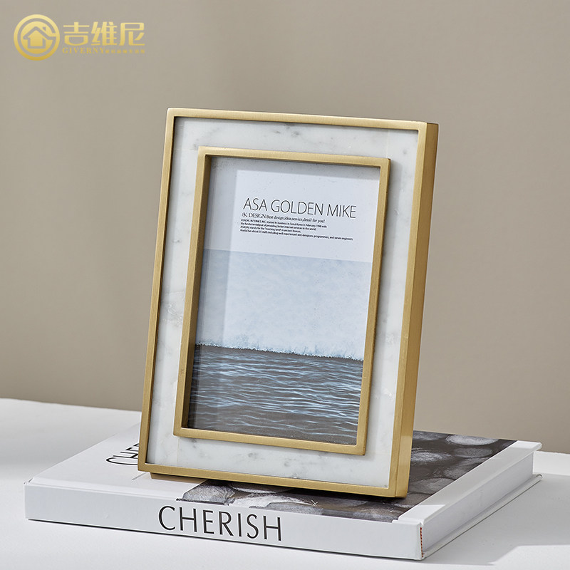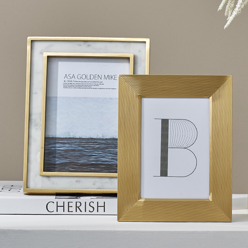 Modern light and luxurious brass metal photo frame Pendulum Bench With Marble Junction Wedding Photos 6 Inch 7 Inch Wash Photos Living-room Pendulum Pieces