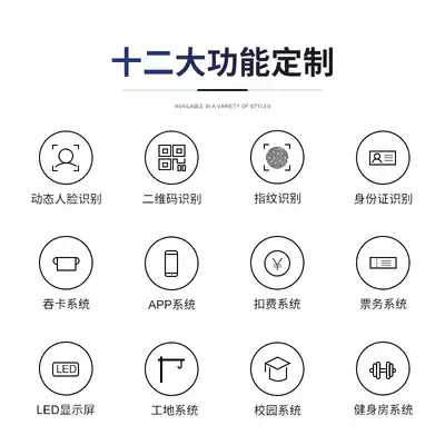 Wing brakes, single-movement wing gates, double-movement pendulum gates, single-movement pendulum gates, double-movement Manual three-roller gates (excluding access control), access control system, dynamic face recognition machine, other functions customization