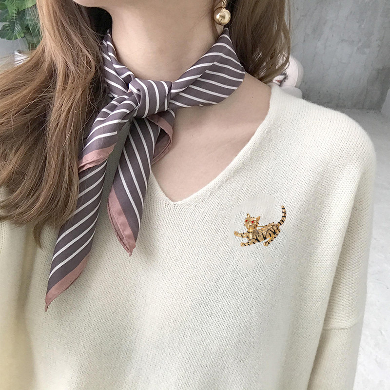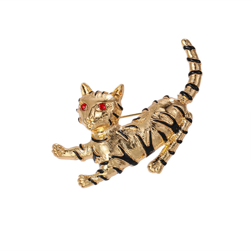Cat painting tiger brooch women's hat skirt accessories anti-glare pin fixed deep V neck corsage trinkets