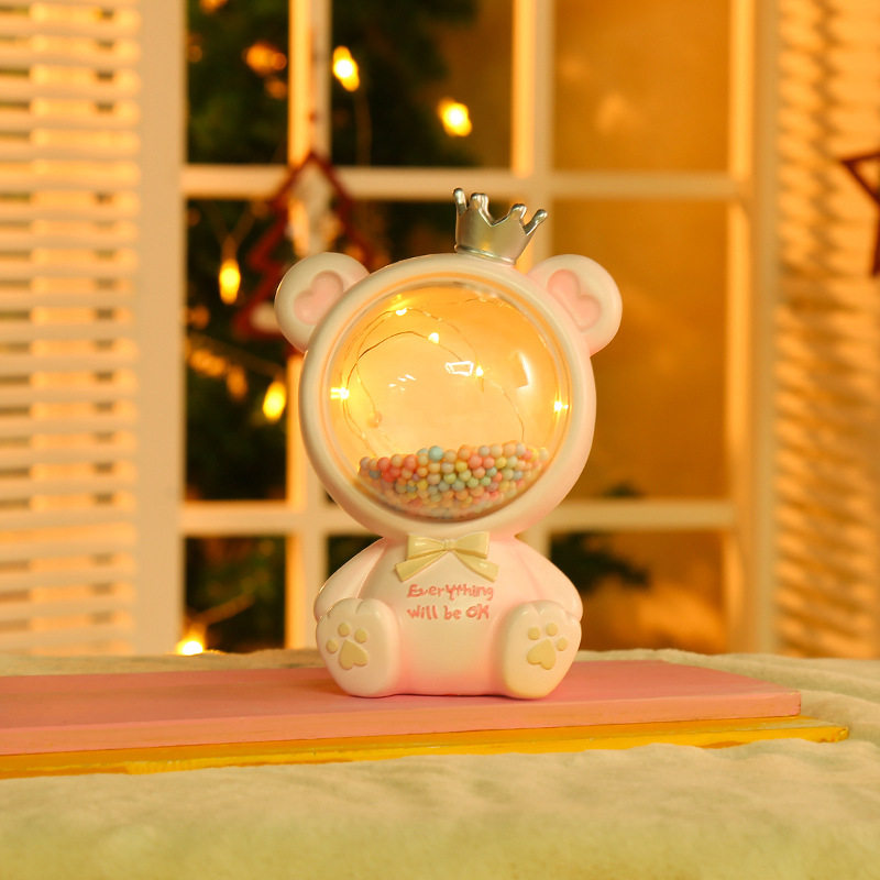 Cute Little Bear Star Light Desktop Pendulum piece Creative little animal resin Bedroom bedside table decorated with children