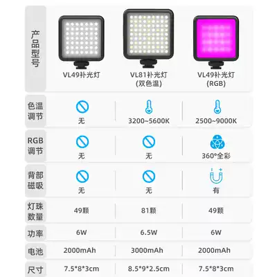 VL49 fill light (white light) VL49 fill light (color RGB color temperature