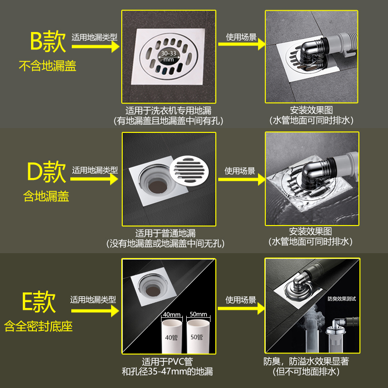 D1 Elbow floor drain cover anti-overflow pipe D6 Universal straight-through floor drain cover anti-overflow pipe D3 Positive tee floor drain cover anti-overflow pipe D4 Y-type trident floor drain cover anti-overflow
