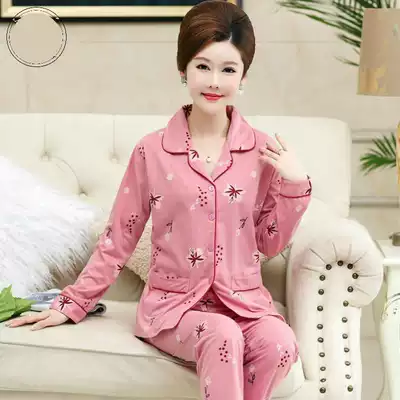 Mother pajamas female cotton spring and autumn old mother-in-law paragraph middle-aged and old women Summer loose 50-year-old two-piece women's clothing