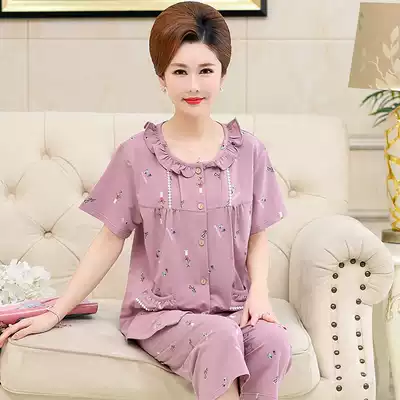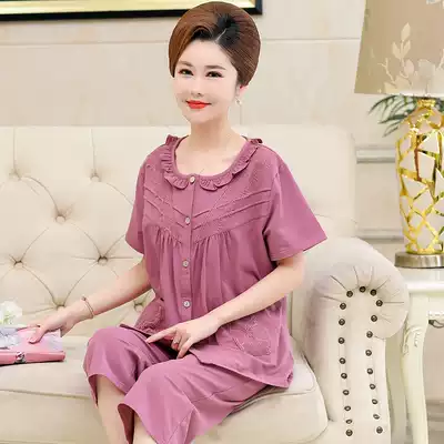 Summer Pajamas Women Cotton Short Sleeve Capri pants Cardigan Plus Size Loose Thin Grandma Summer Set