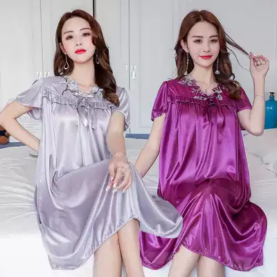 Ice Silk Nightdress Women Summer Fat Plus Size Sexy Pajamas 200 Jin Fat MM Ice Silk Summer Women Nightdress Loose Loose