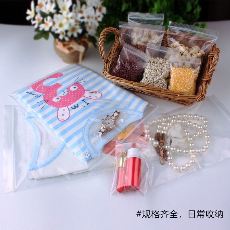 Transparent self-sealing bag plastic pe food packaging bag thickened disposable sealing mouth sub-packaging storage small large