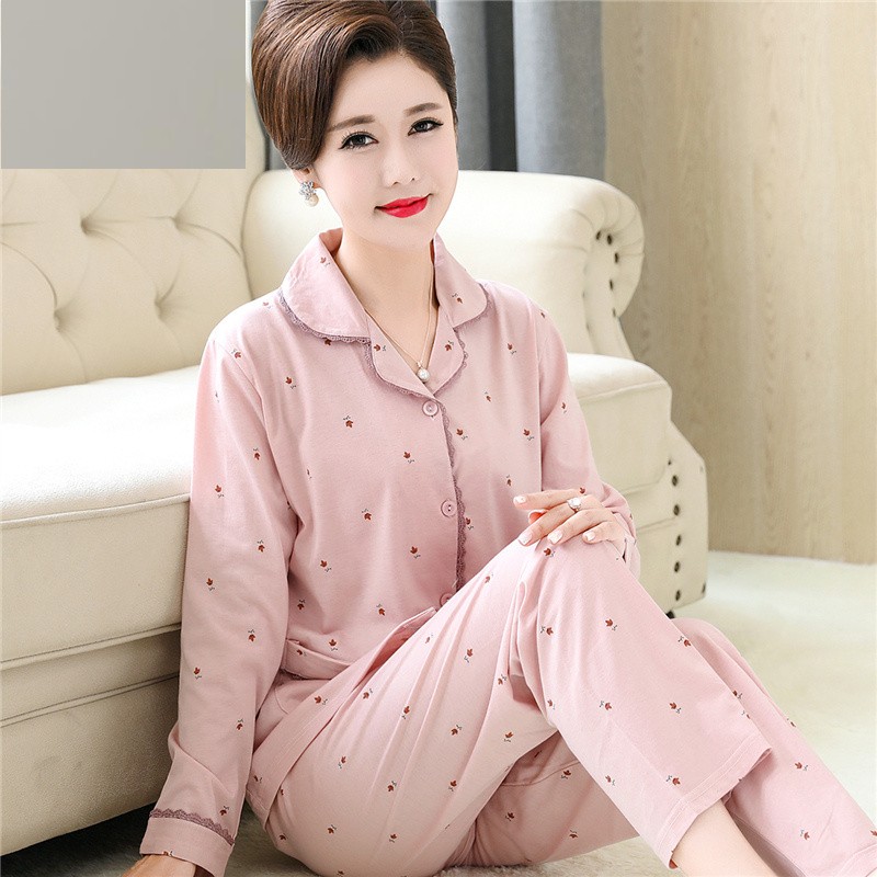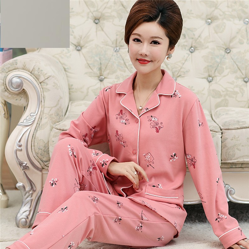 Middle-aged and elderly pajamas women's summer cotton long-sleeved plus fertilizer plus size 200 catties mother loose cotton spring and autumn suit