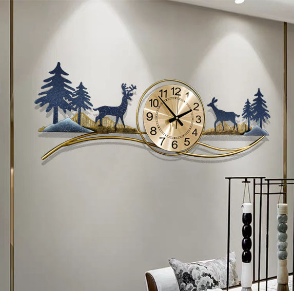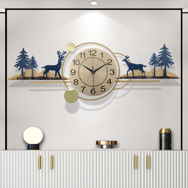 New Chinese Creativity and watch Living room Dining Room Dining Room Clock Light Extravagant Hanging Wall Hung Wall Clocks Accessories Hair deer Art Atmosphere hanging table