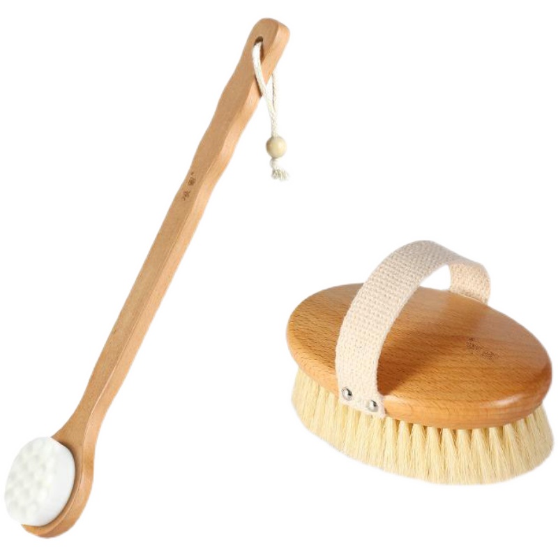 Nanzhu pig mane bath brush hand in hand with 1 Nan bamboo pig mane bath brush 1 handle 1 vegetable fiber long handle dry brush (send hook) pig mane long handle bath brush (dry and wet dual-use) Pig Mane Meridians dry cleaning group