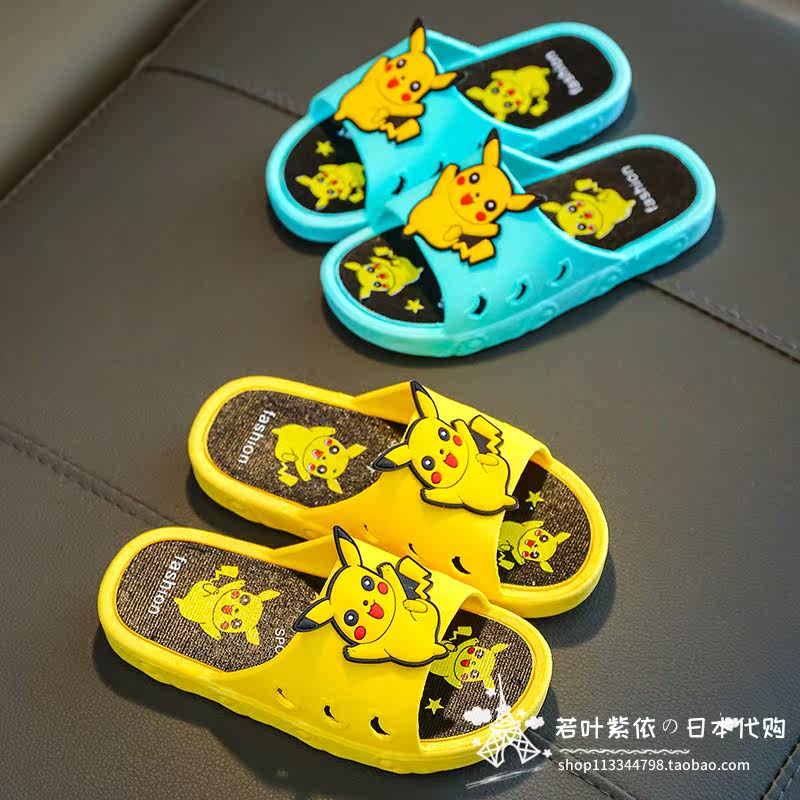 Japan JULIPET Baby Boy Cartoon Flat Heel Stay-at-home Non-slip Cute Bathroom Pikachu Sandals-Taobao