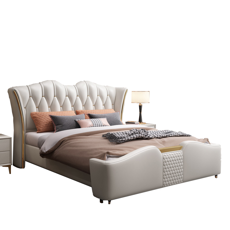 Light luxury minimalist leather bed post-modern master bedroom atmospheric double bed fashion high-end Iins wedding bed storage leather art bed