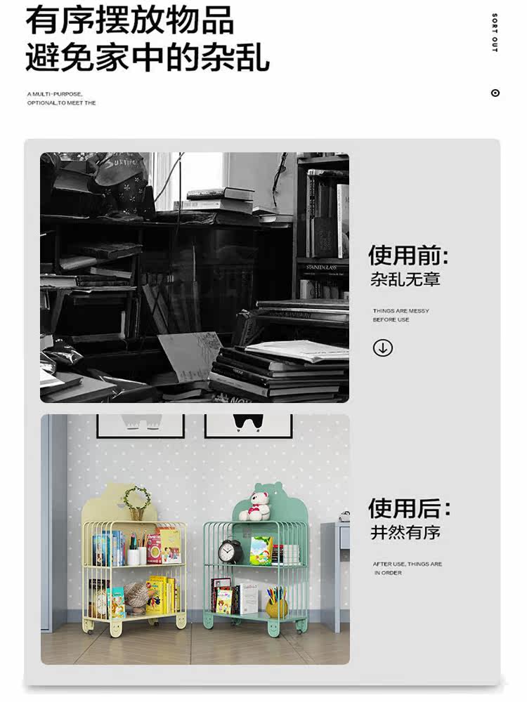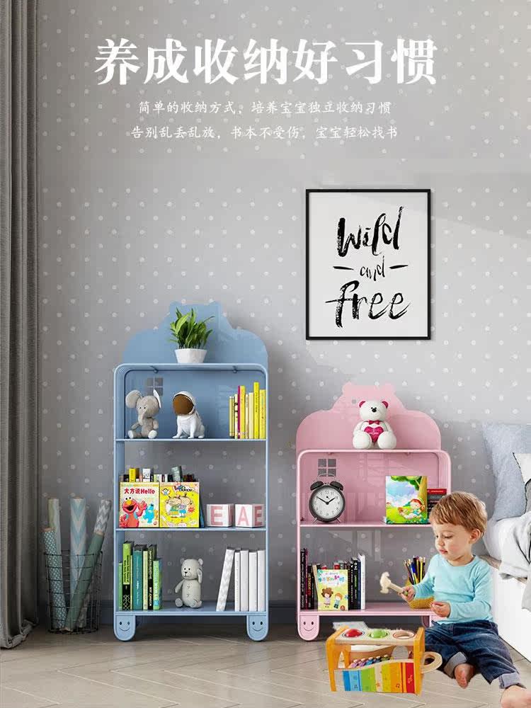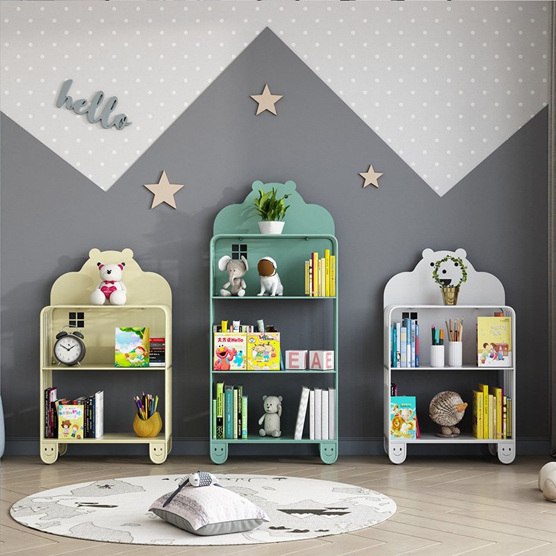 Children's cartoon bear iron bookshelf baby picture book rack floor rack simple toy storage cabinet book rack