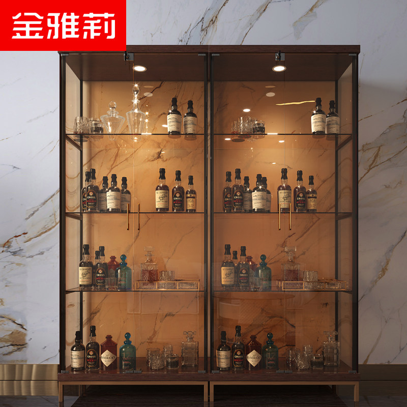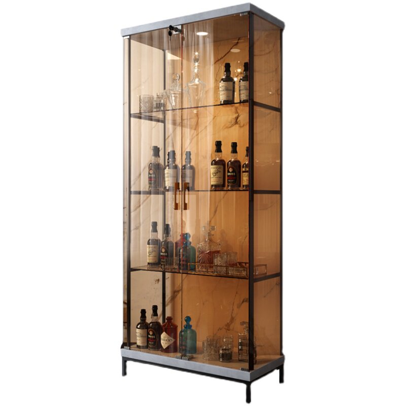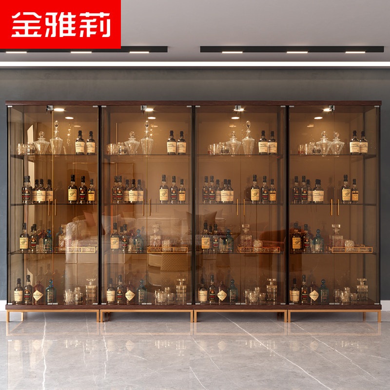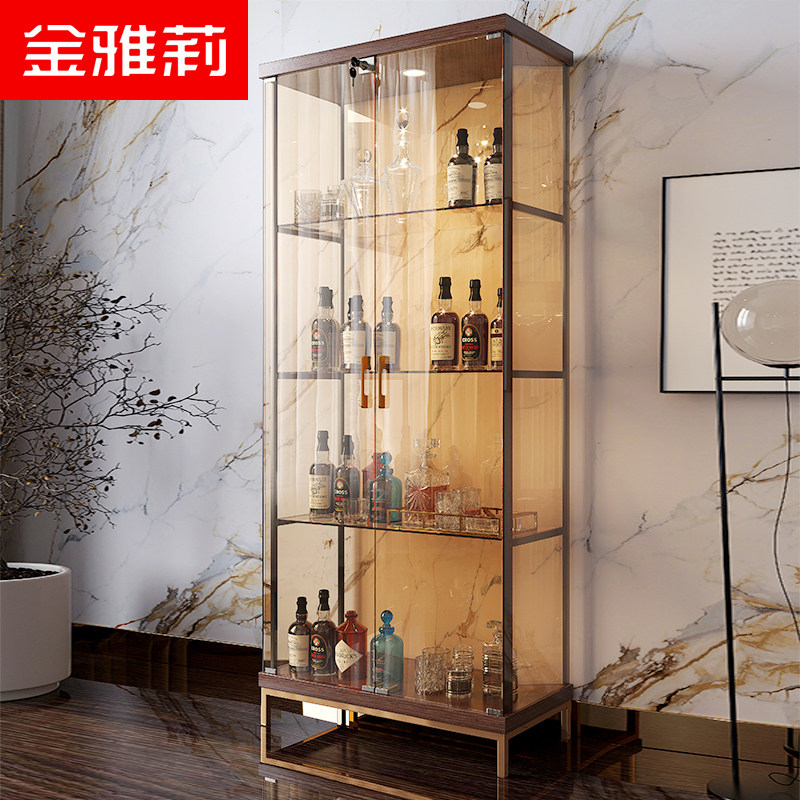 Living Room Wine Cabinet Minimalist Modern Display Cabinet Leaning Against Wall Dining Side Cabinet Glass Cupboards Red Wine Collection Cabinet Tea Color Glass Cabinet