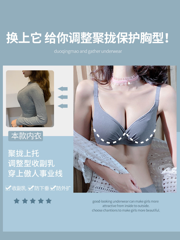 Diane Finn thin underwear woman deep V small bra gathering with breast-free lap bra set to anti-perplexing