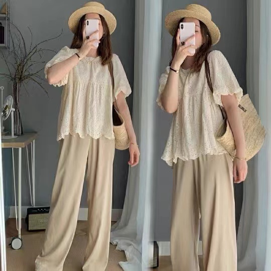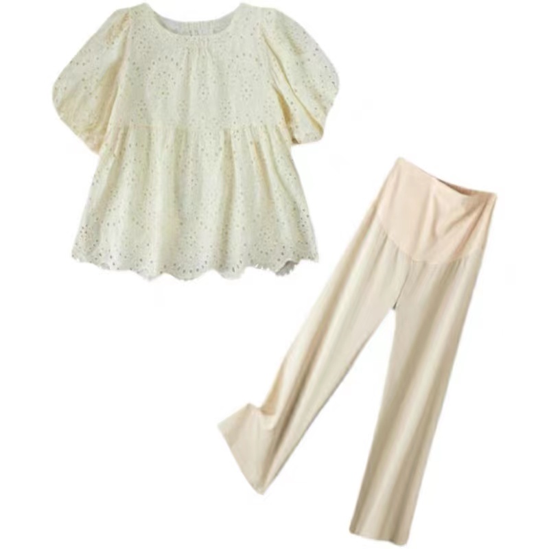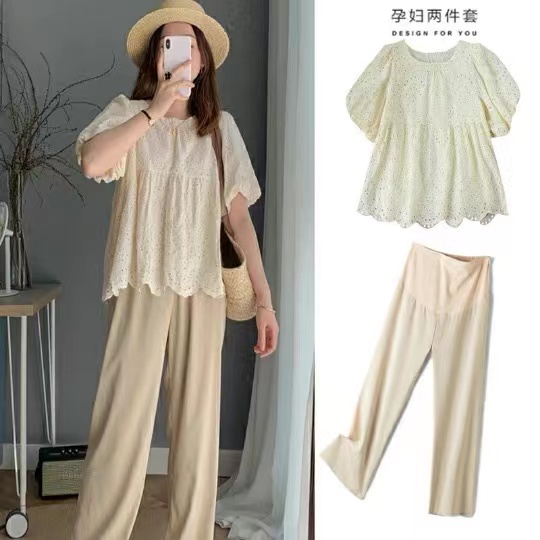 Net Red Gestational Woman Dress Summer Clothing Suit 2022 New Fashion Loose Blouse Summer Casual Pants Two Sets Thin