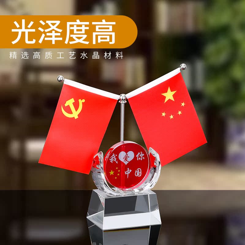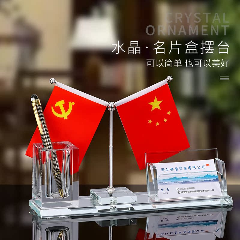 Custom crystal glass pen holder creative business card box desk decoration conference room desktop small red flag five-star red flag table party flag decoration party member pioneer post table sign table card high-end storage box