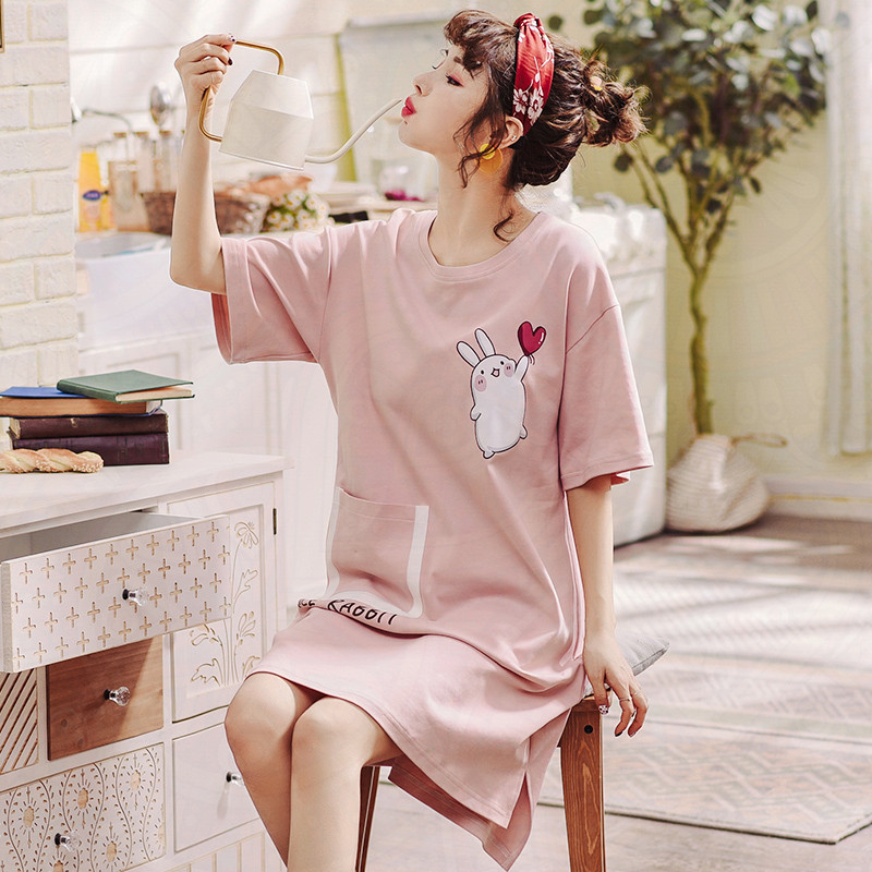 Pure cotton sleeping dress summer thin sleeve large size pregnant woman dress dress in 2022 new home clothes