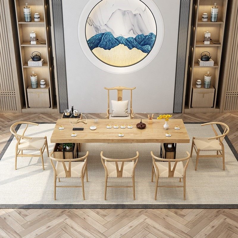 Solid wood tea table 220*80*75*Y chair Solid wood tea table 220*80*75200 table 1 official hat 5 circle chairs circle chair solid wood tea table 180*70*75180 table 1 official