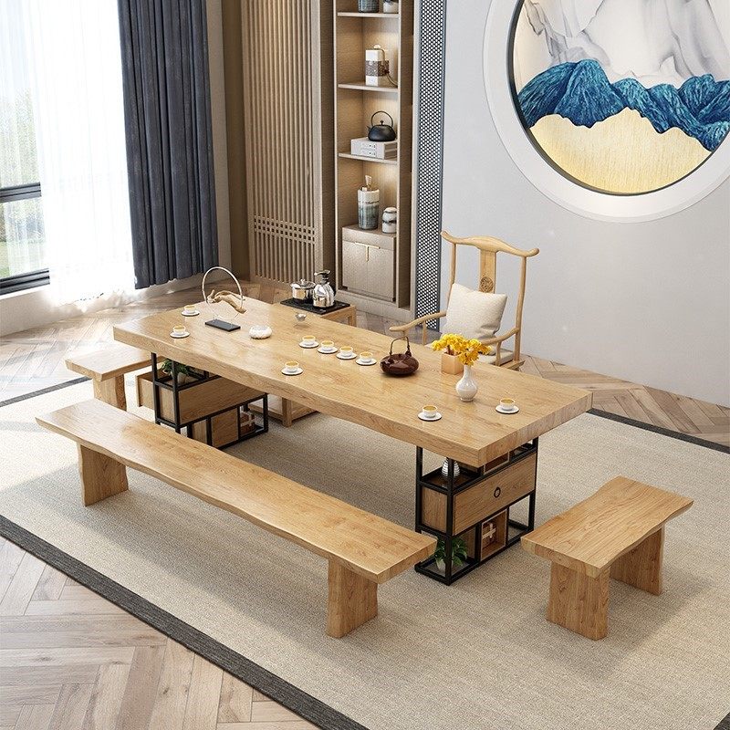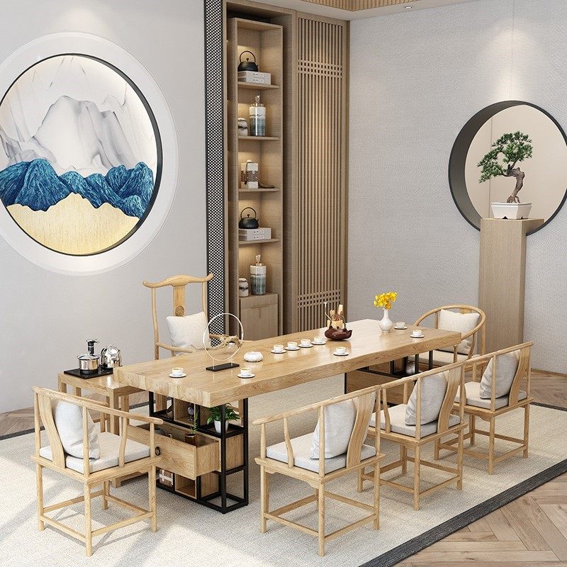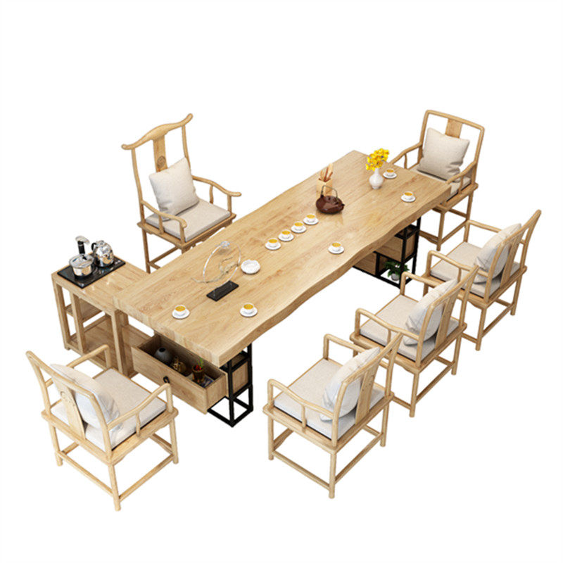 Solid wood tea table and chair combination new Chinese log large board Zen simple modern tea room office set tea table table