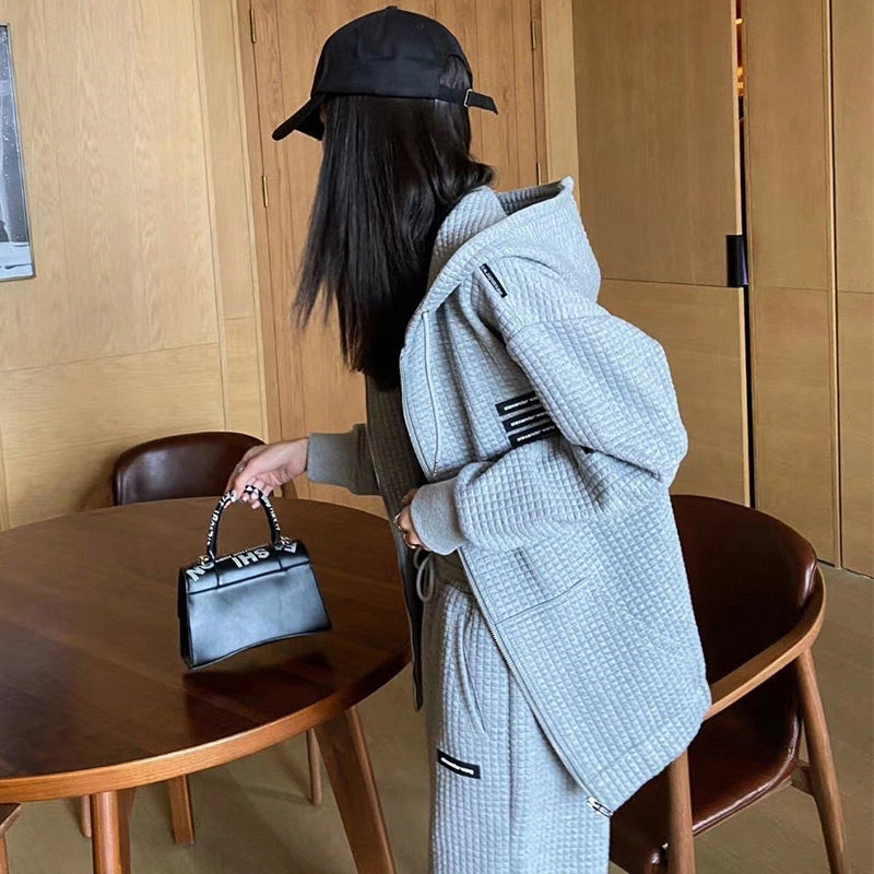 Waffle net red famous brand sportswear casual suit women's early spring thin section fashion high-end hooded sweatshirt two-piece set