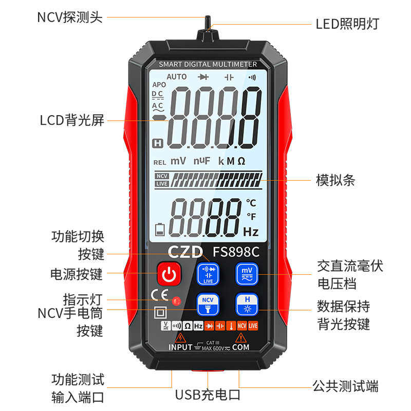 Ultra-slim multimeter digital high-precision digital display universal meter repair electrician intelligent anti-burn automatic small portable