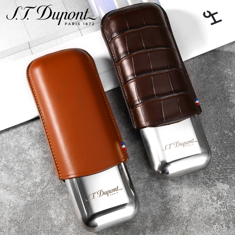 French Dupont S T Dupont metal leather leather case cigar box portable cigar cylinder high-grade crocodile leather pattern