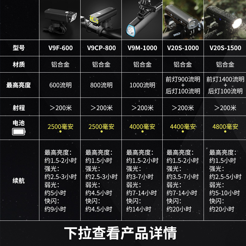 Calong V9M-1000 mountain road bike LED light headlight strong light usb charging night riding equipment