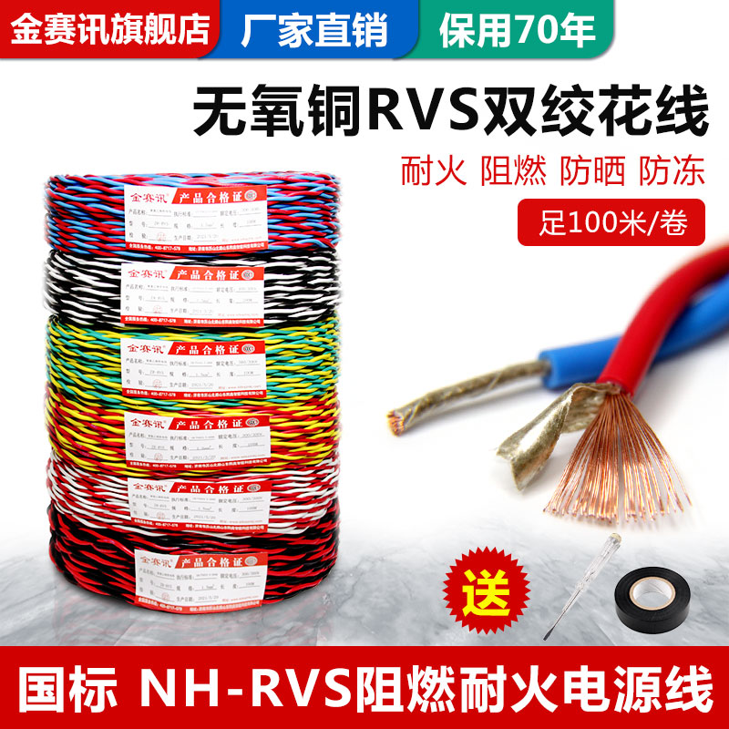 National Standard Nh-Rvs Wire Home Double Twist Wire 2 Core Pure Copper Fire Line 1 1 5 2 5 Squared Signal Line