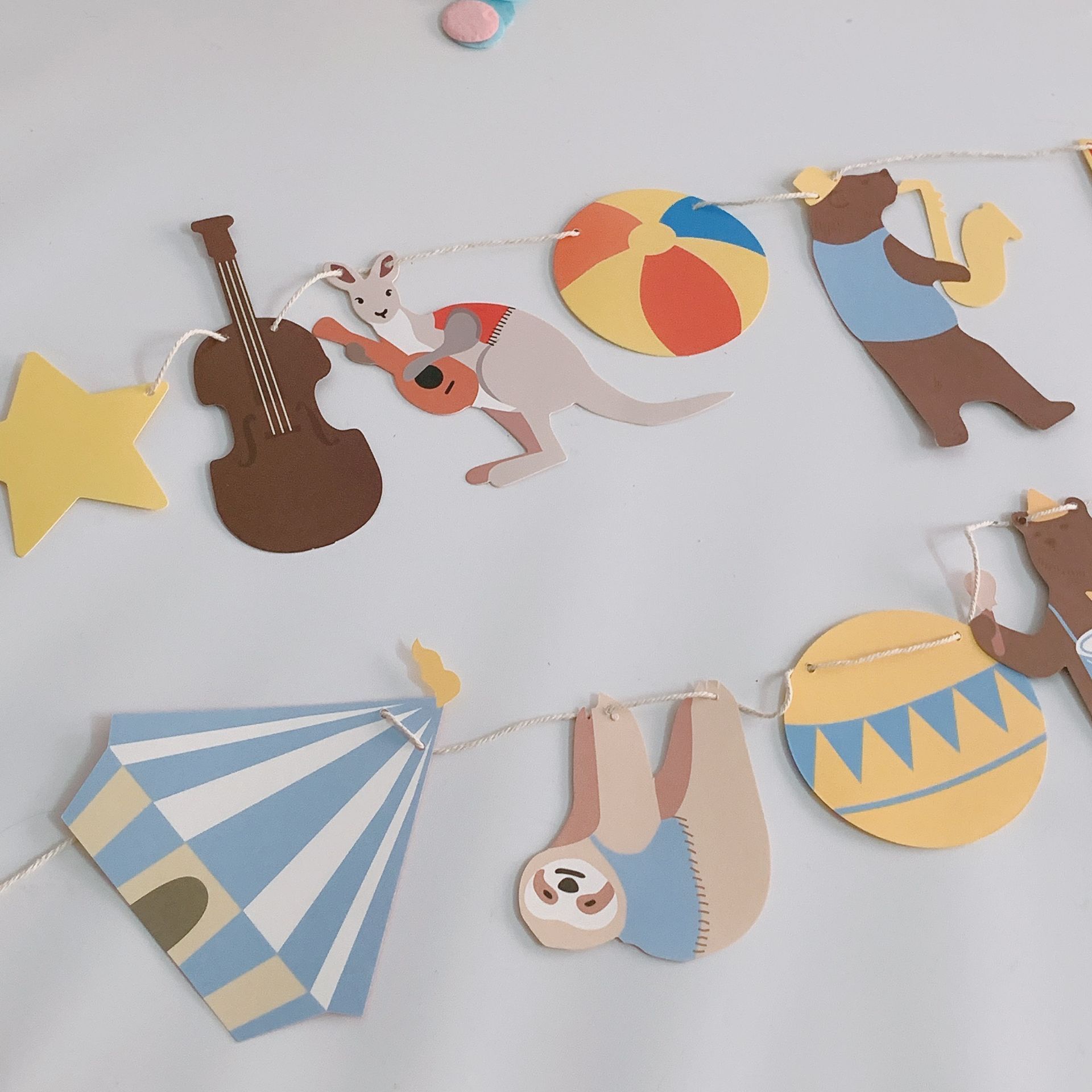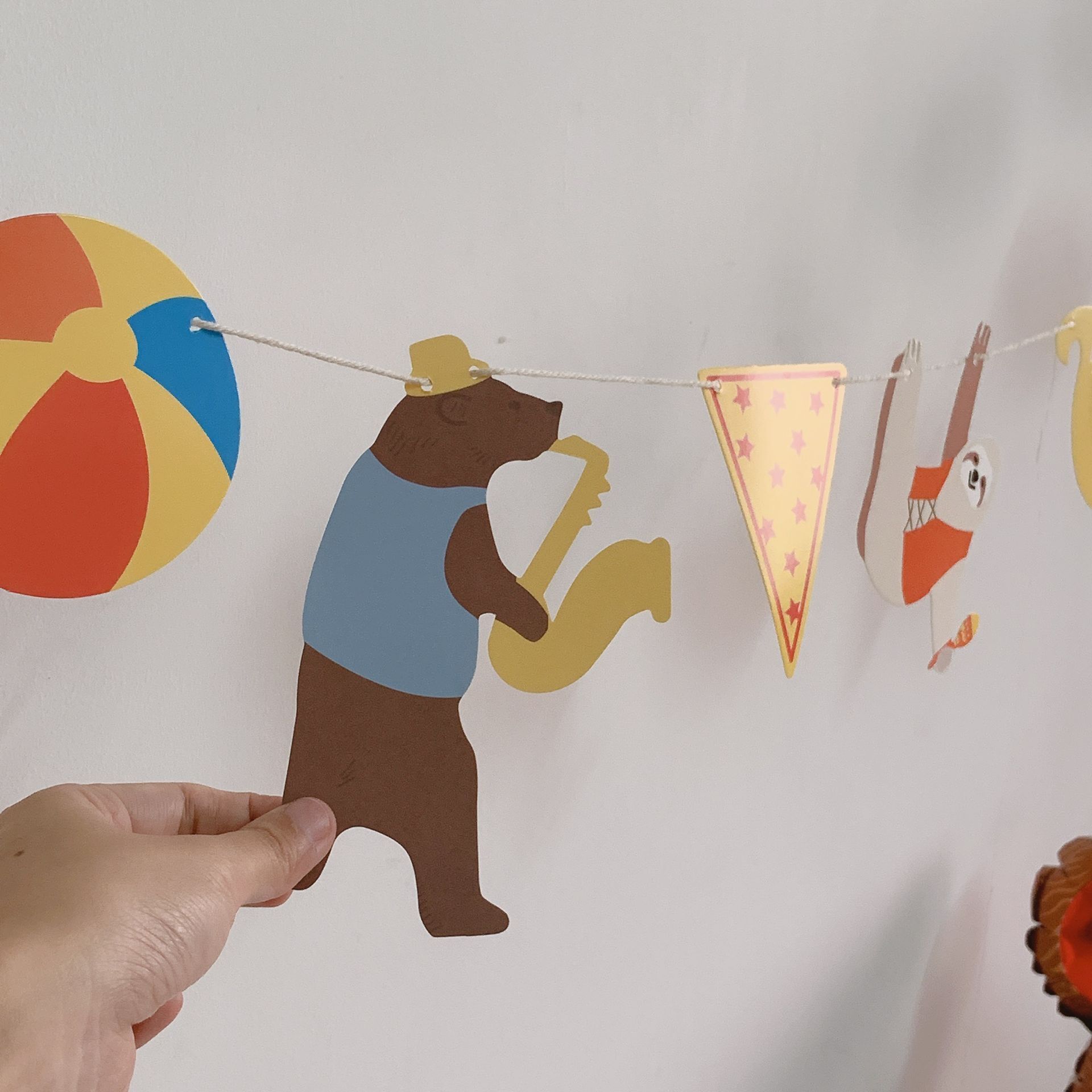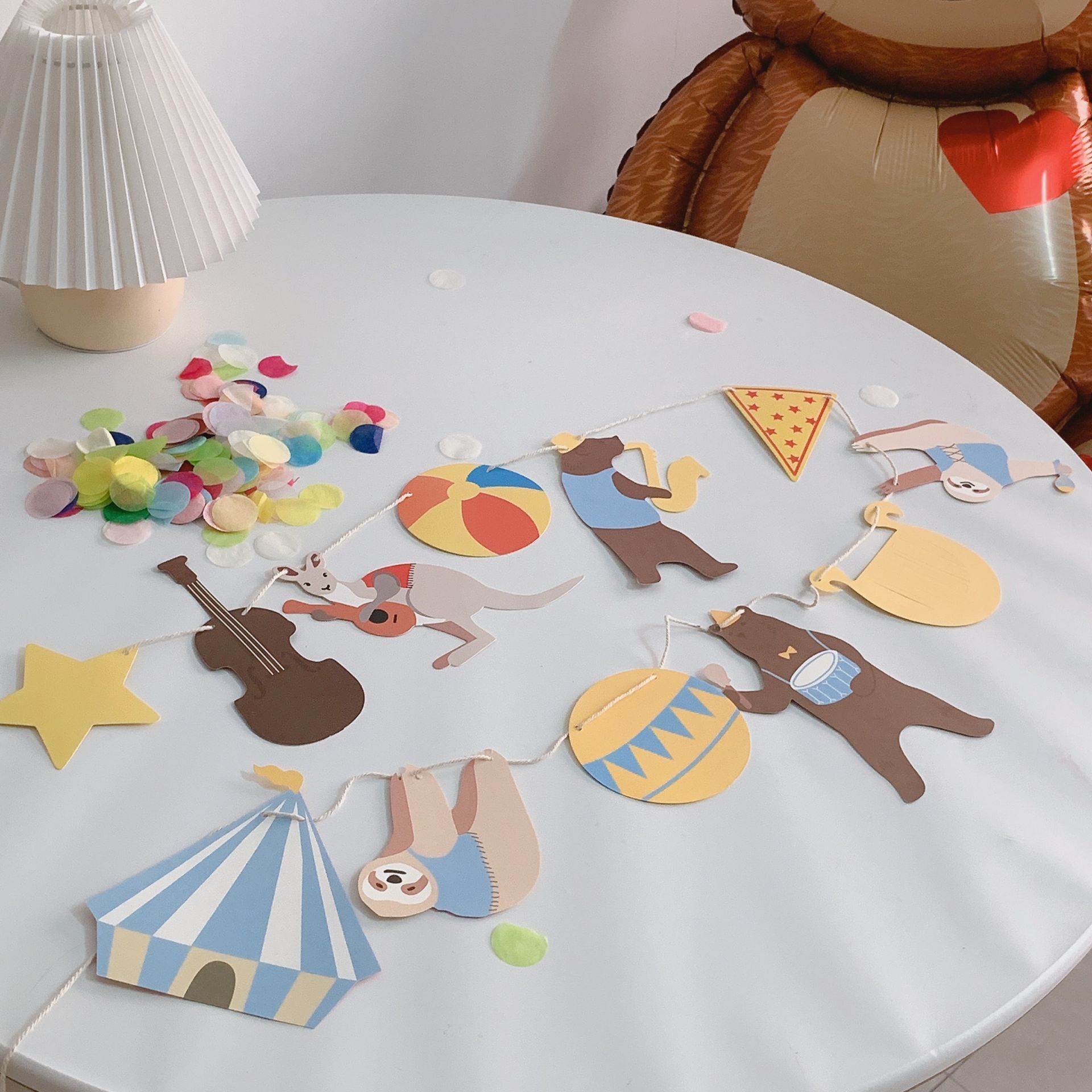Children's birthday arrange flag-label cartoon animal circus colorful children's room window decorated 100-day full moon flag