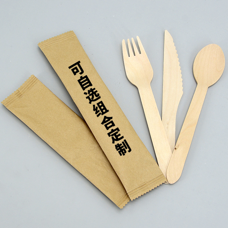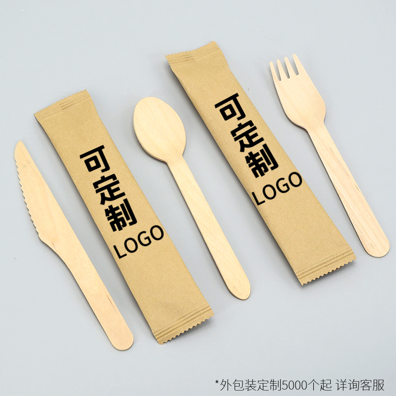 Disposable Chinese knife and fork spoon ice cream wooden spoon wooden fork wooden knife round spoon dessert spoon long handle spoon custom commercial