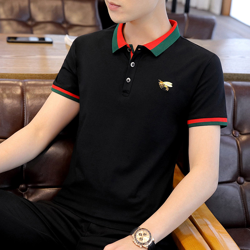 Small Bee Short Sleeve T-shirt Male Trend Pure Cotton Turtlenecks Polo Shirt Summer Ice Silk Boom With Collar Tt-shirt Clothing