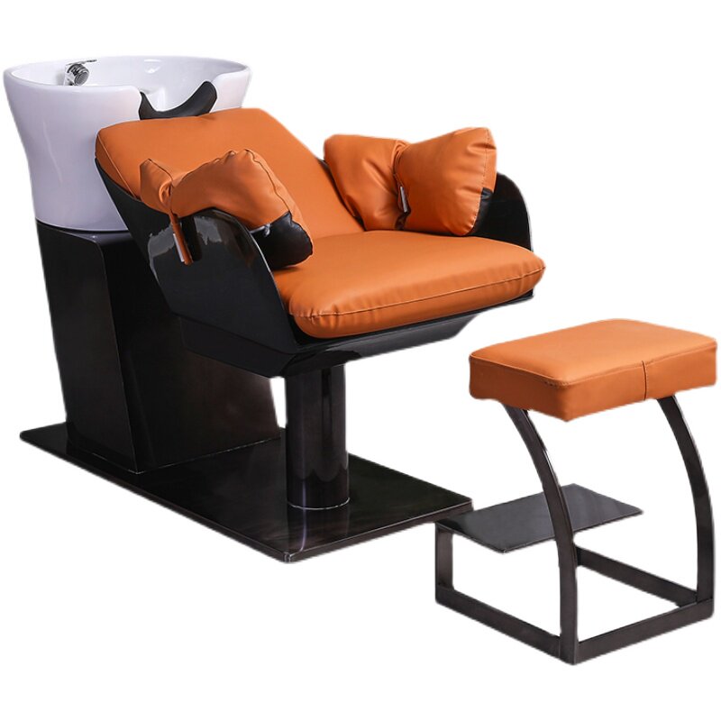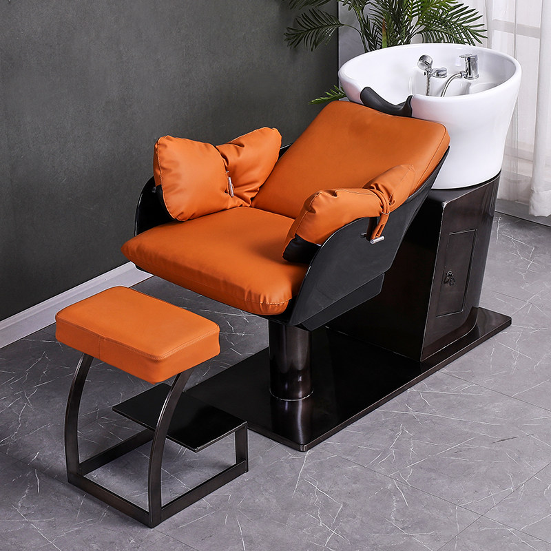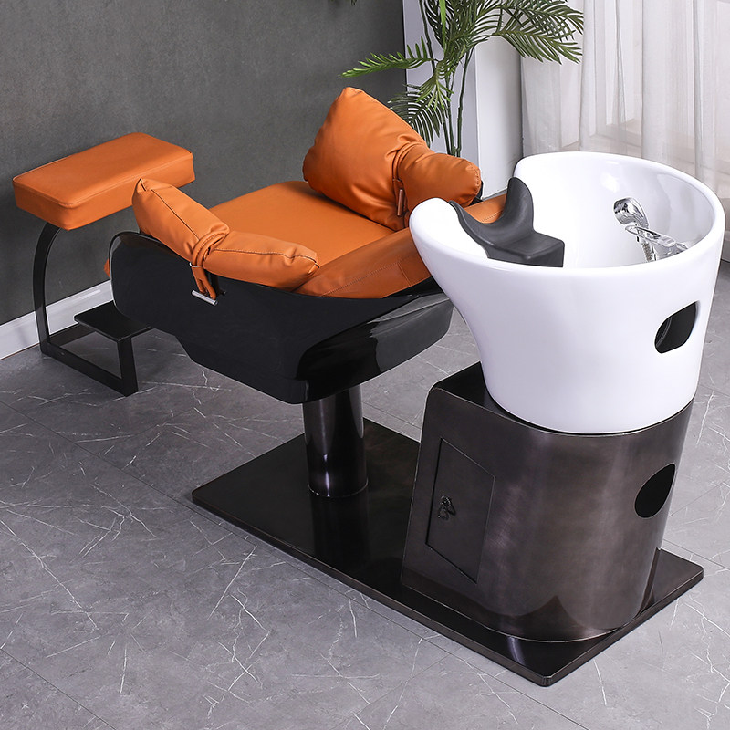 Hairdresseshop Shampoon Bed Hair Salon Special Stainless Steel Half Lying Type Flush Bed Ceramic Basin Beauty Hair Shop Massage Bed